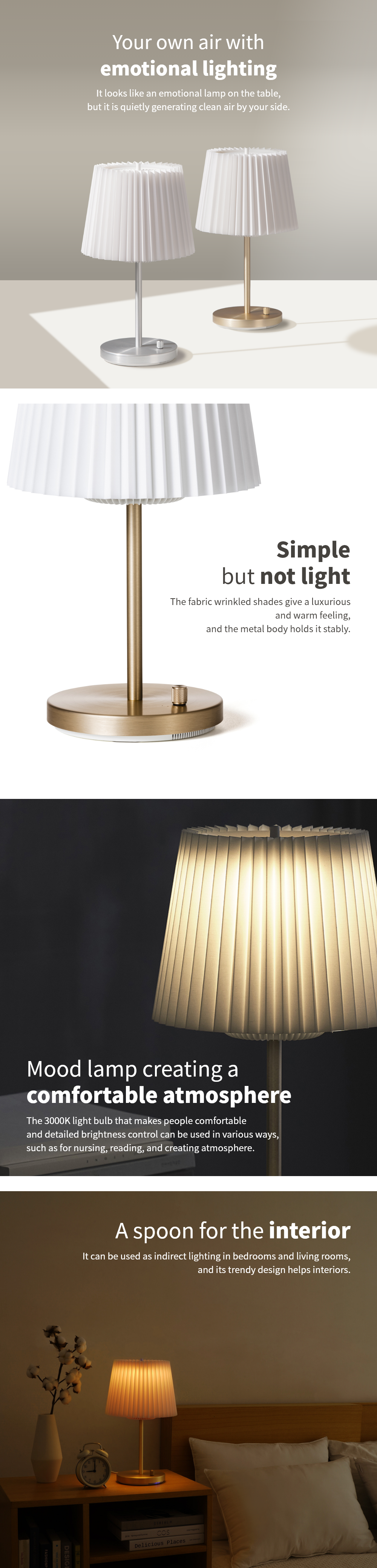 With a covering area of 20 square meters it is great for purifying-intensive spaces such as rooms, bed headers, and desks.