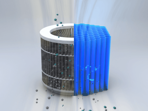 This air sterilizer has an electrochemical photocatalyst unit coated with mesoporous structured titanium dioxide materials. It uses 460nm wavelength visible light to generate hyperactive hydroxyl radicals that ultimately break down harmful substance by destroying the molecular bonds—effectively cleaning the air without producing any harmful byproducts.